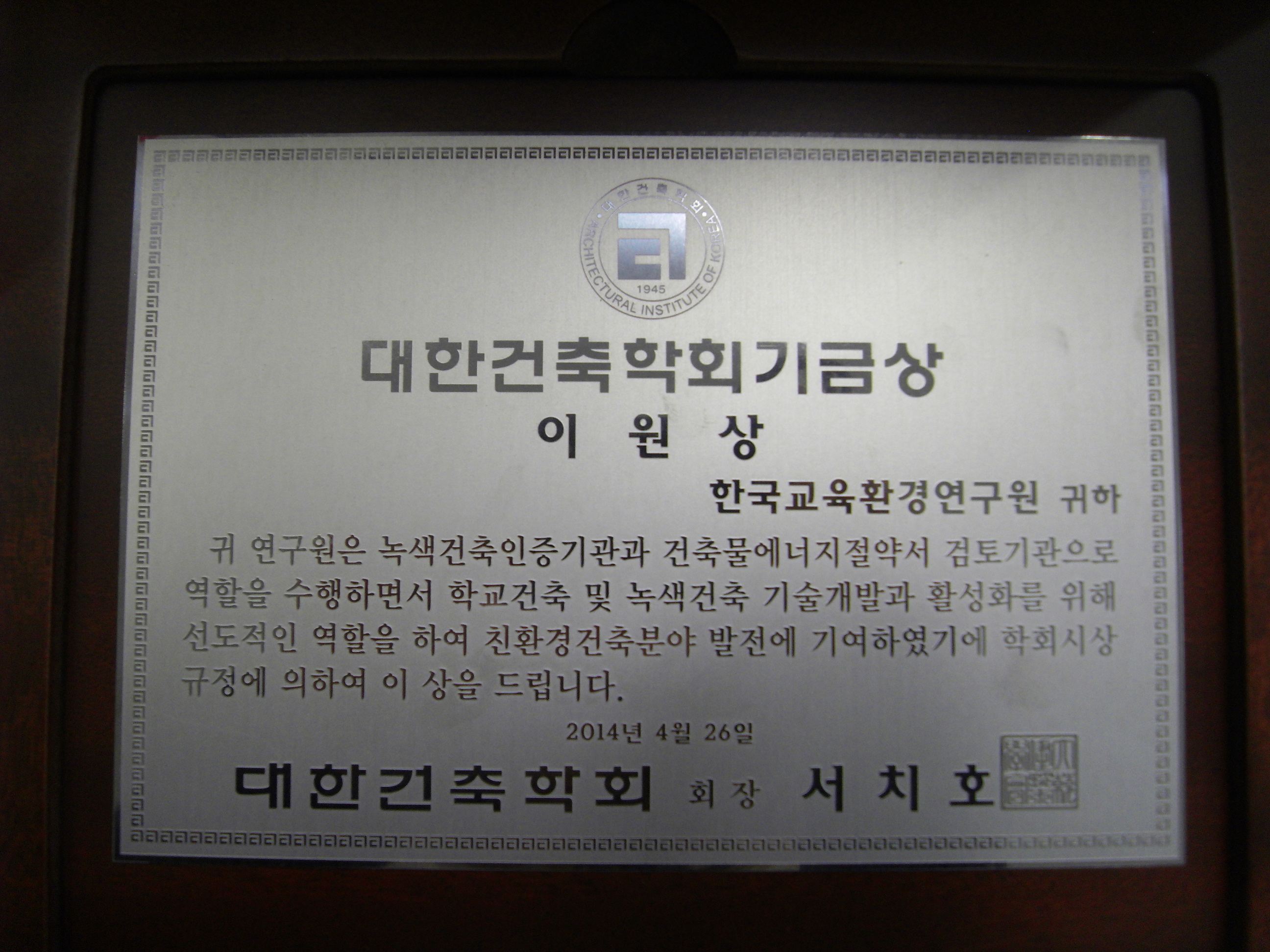º» ¿¬±¸¿øÀº 4¿ù 26ÀÏ ³ì»ö°ÇÃàÀÎÁõ±â°ü°ú °ÇÃ๰ ¿¡³ÊÁöÀý¾à¼ °ËÅä±â°üÀ¸·Î ¿ªÇÒÀ» ¼öÇàÇÏ¸é¼ Çб³°ÇÃà ¹× ³ì»ö°ÇÃà ±â¼ú°³¹ß°ú Ȱ¼ºÈ¸¦ À§ÇØ ¼±µµÀûÀÎ ¿ªÇÒÀ» ÇÏ¿© ģȯ°æ °ÇÃàºÐ¾ß ¹ßÀü¿¡ ±â¿©ÇÔ¿¡ µû¶ó ´ëÇѰÇÃàÇÐȸ±â±Ý»ó ÀÌ¿ø»óÀ» ¼ö»óÇÏ¿´½À´Ï´Ù.