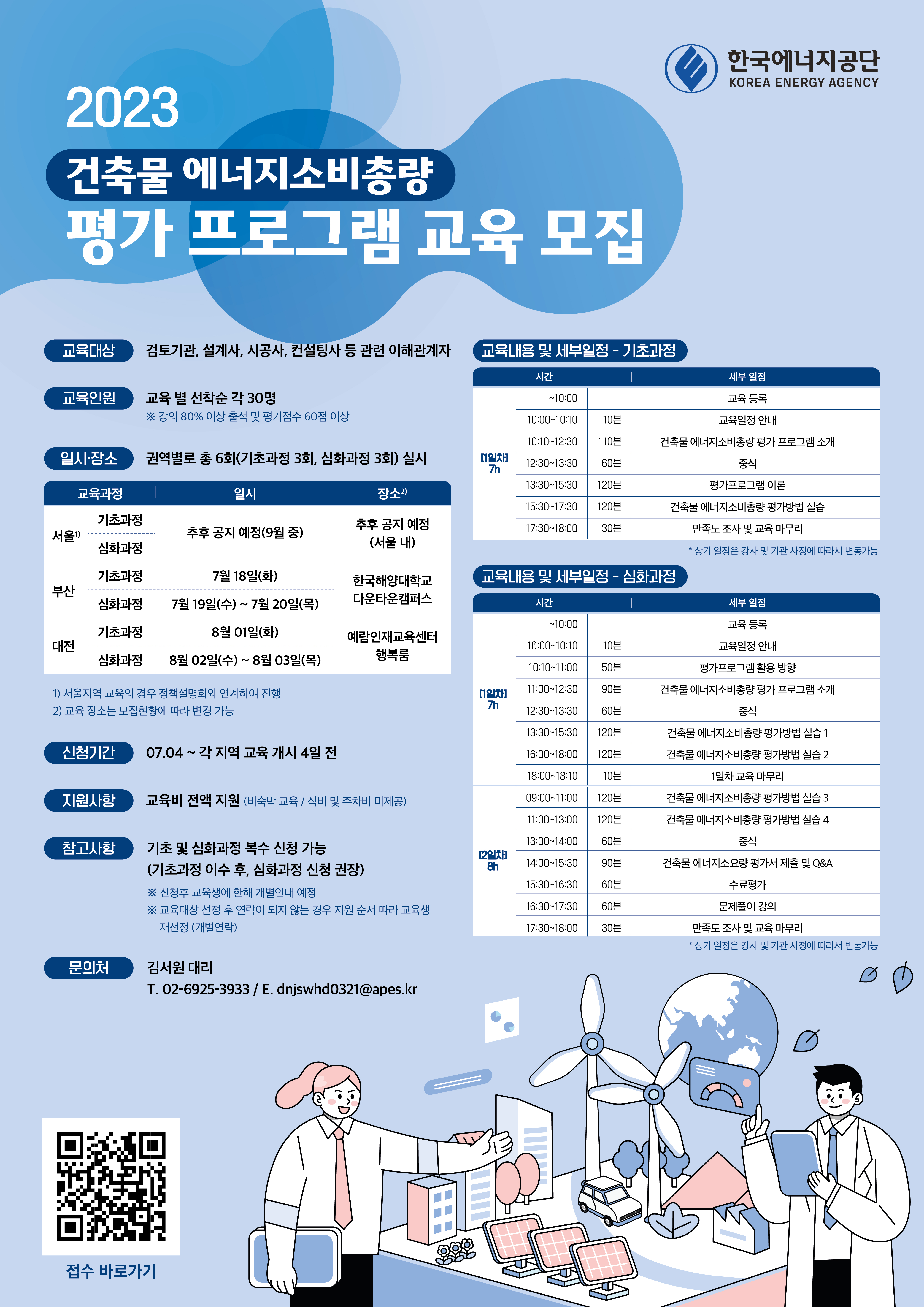 2023³â °ÇÃ๰ ¿¡³ÊÁö¼ÒºñÃÑ·® Æò°¡ ÇÁ·Î±×·¥ ±³À° ¸ðÁý¿¡ ´ëÇÏ¿© ¾È³»µå¸³´Ï´Ù.